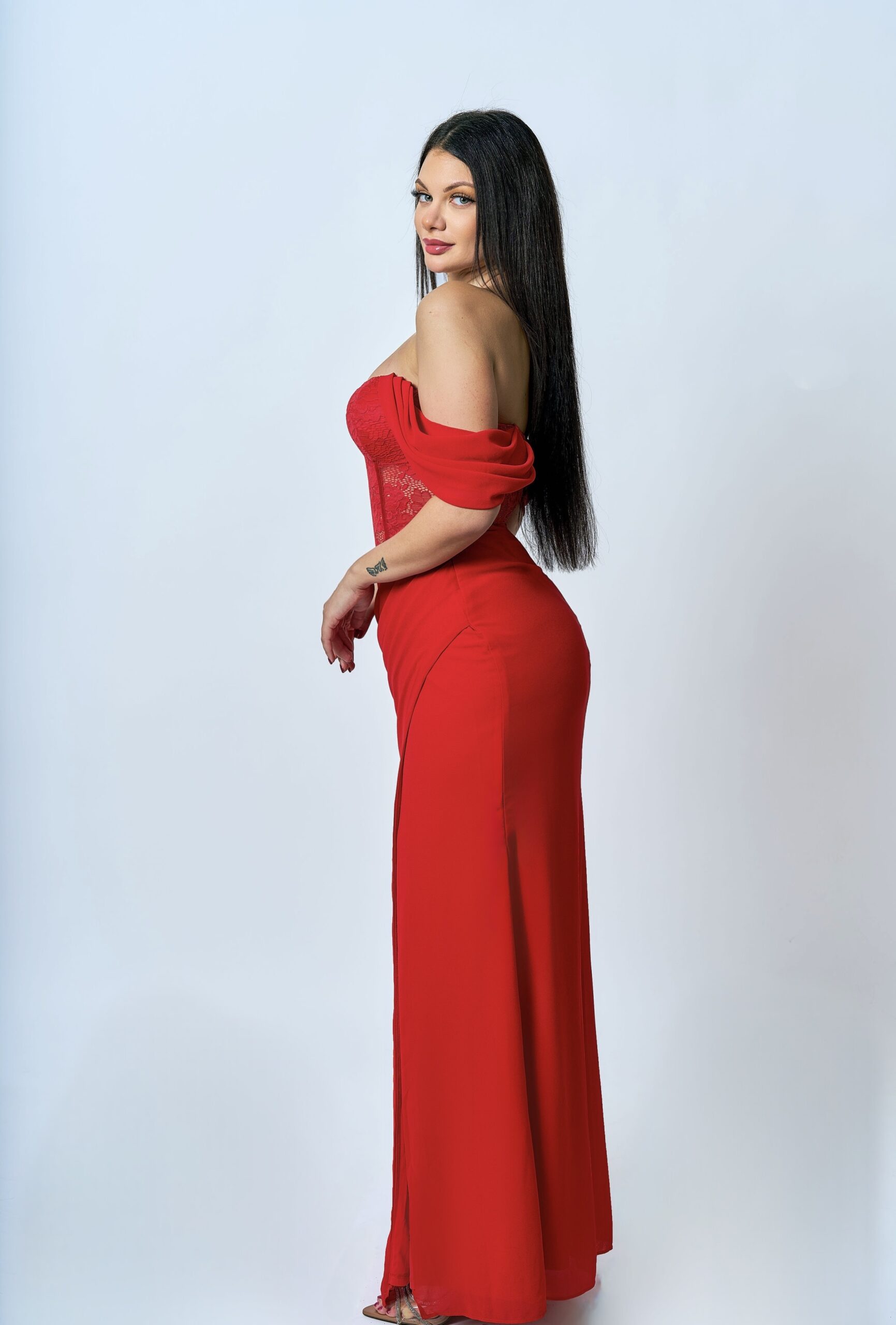 IGNIS is designed to ignite attention.A powerful evening statement, this off-the-shoulder maxi